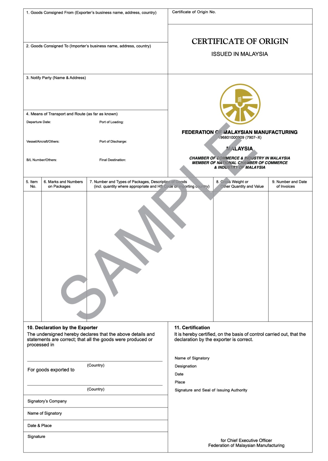 • Certificates of Origin endorsed by FMM are recognised and accepted by Customs